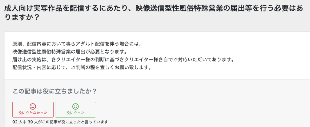 ファンティアなどのアダルト配信プラットフォームでは、過去「映像送信型性風俗の届出は不必要」と無責任な見解を示すサイトが多かったです。